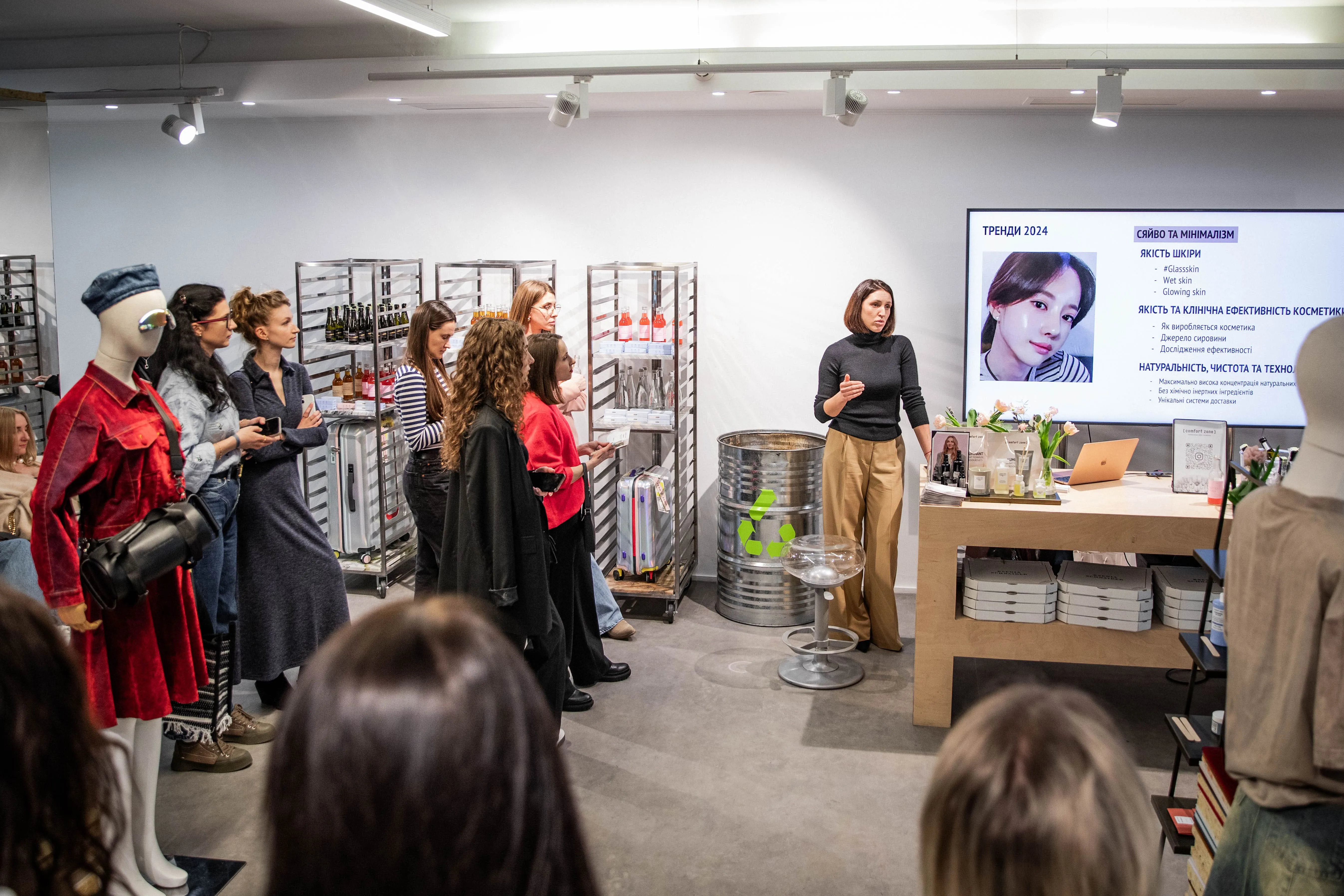 Линейку Luminant представила бренд-директор [ comfort zone ] Олеся Божко и бренд-тренер Юлия Шопяк. Спикеры познакомили гостей поближе с концепцией устойчивого развития и осознанного отношения к окружающей среде, здоровью и красоте, которые являются основой философии [ comfort zone ].