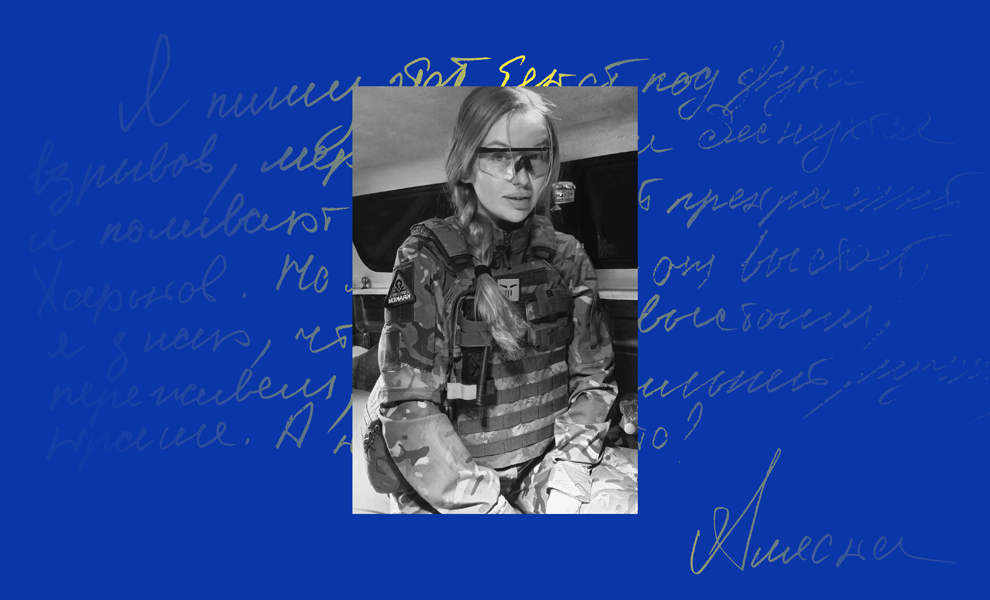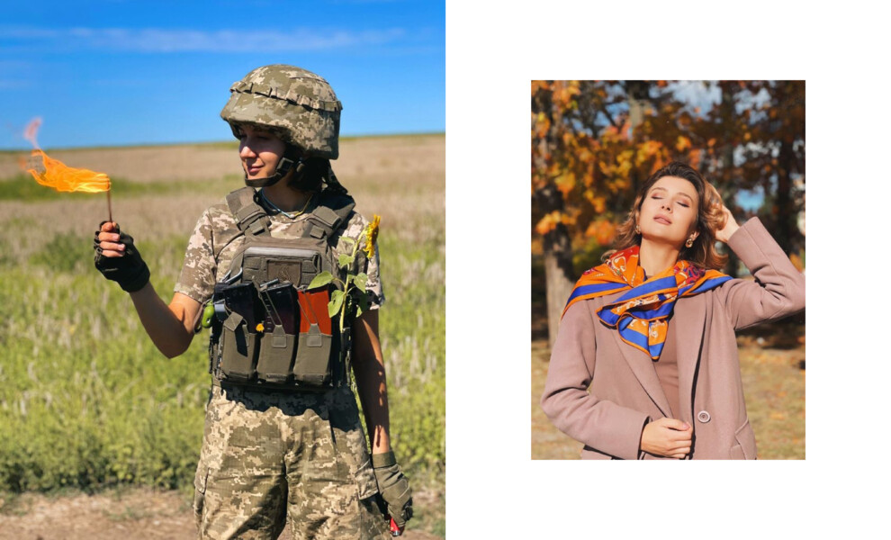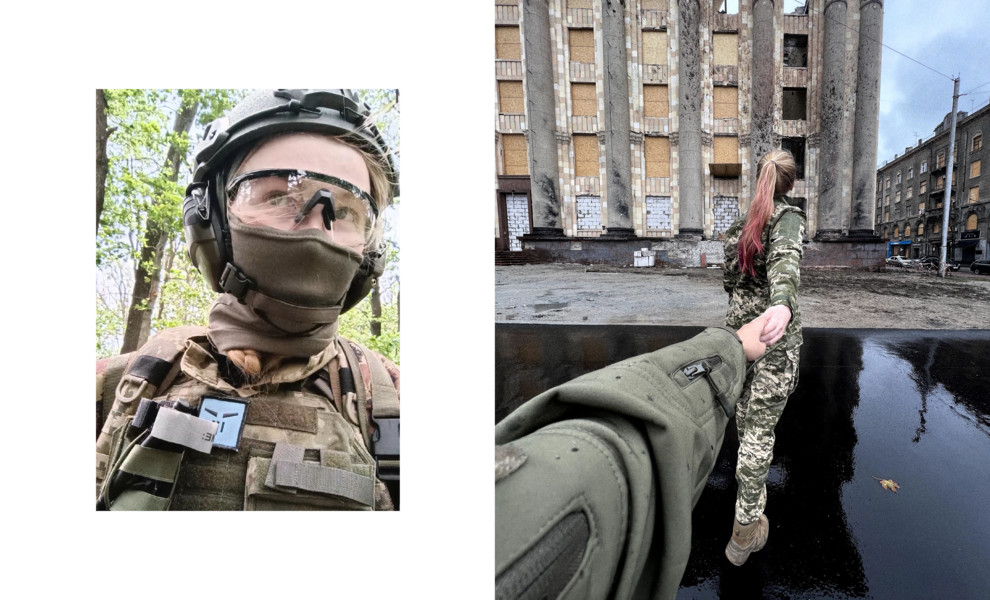 Первая героиня - Анастасия «Пресса», военнослужащая Вооруженных сил Украины, которая служит в Изюмском батальоне. Журналистка Анастасия Блищик делится собственной историей с Vogue UA, как поступила в армию несколько месяцев назад - после того, как под Изюмом в результате артиллерийского обстрела погиб ее жених, журналист Александр Махов.