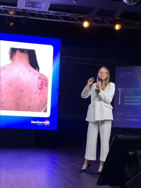 В рамках программы NeoDermos с докладом выступила спикер ALFA Medical & Spa Development врач-дерматовенеролог Антонина Глазепа. Тема ее выступления: «Послеоперационная коррекция рубцов: лазерные методики и инъекционные техники в практике дерматолога».