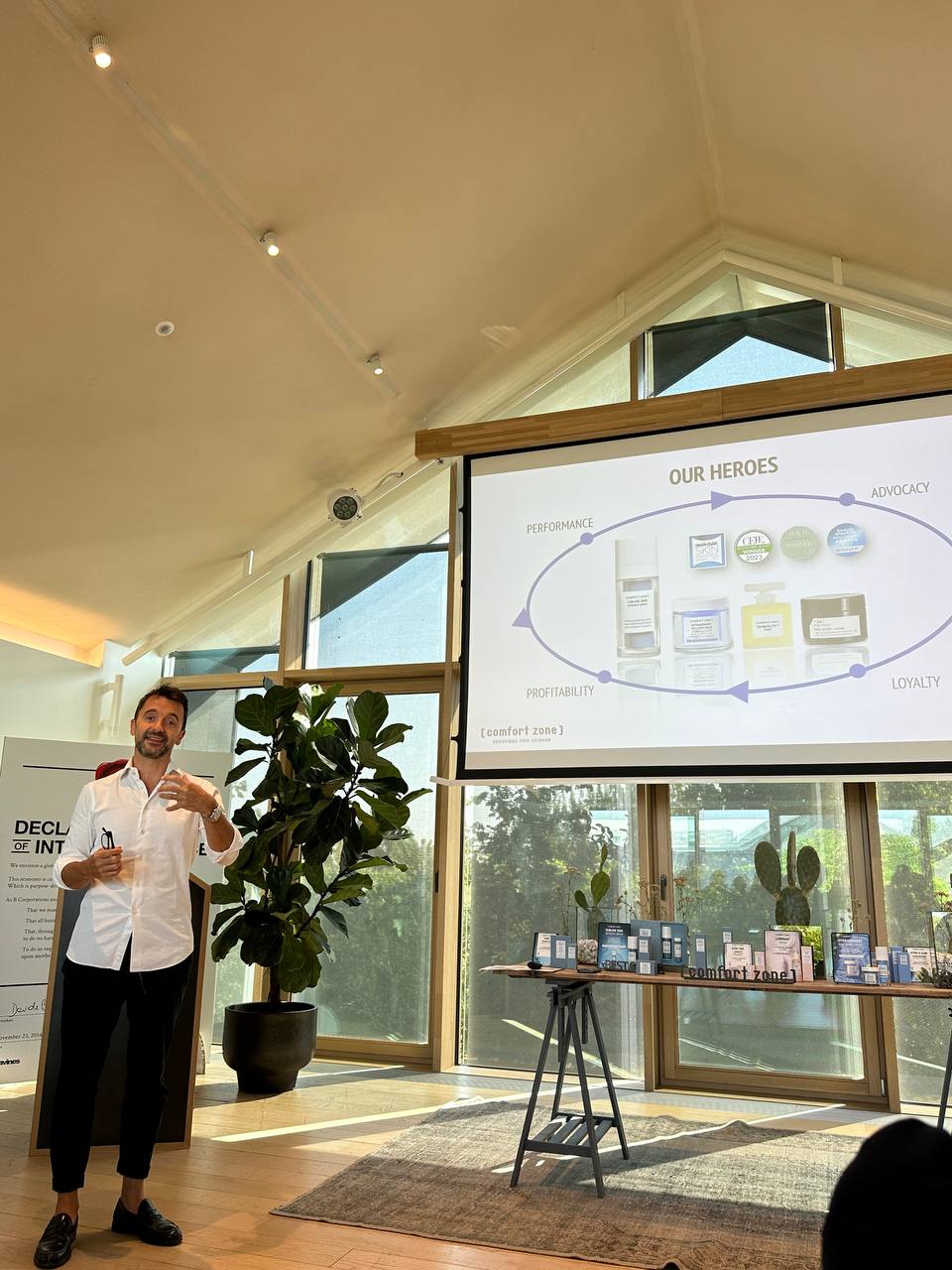 На встрече партнеров представители [ comfort zone] рассказали об особенностях изготовления продукции, поиск наиболее действенных природных компонентов и формул. Технологи бренда делают акцент на том, что их ингредиенты не просто активные, а биоактивные – это подтверждает научную обоснованность каждой составляющей.