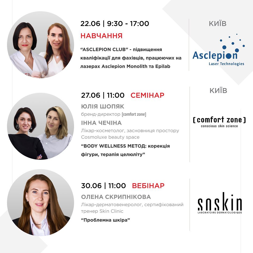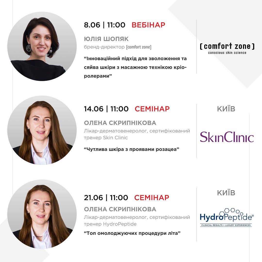 - А также вебинары [ comfort zone ] и SoSkin для косметологов.