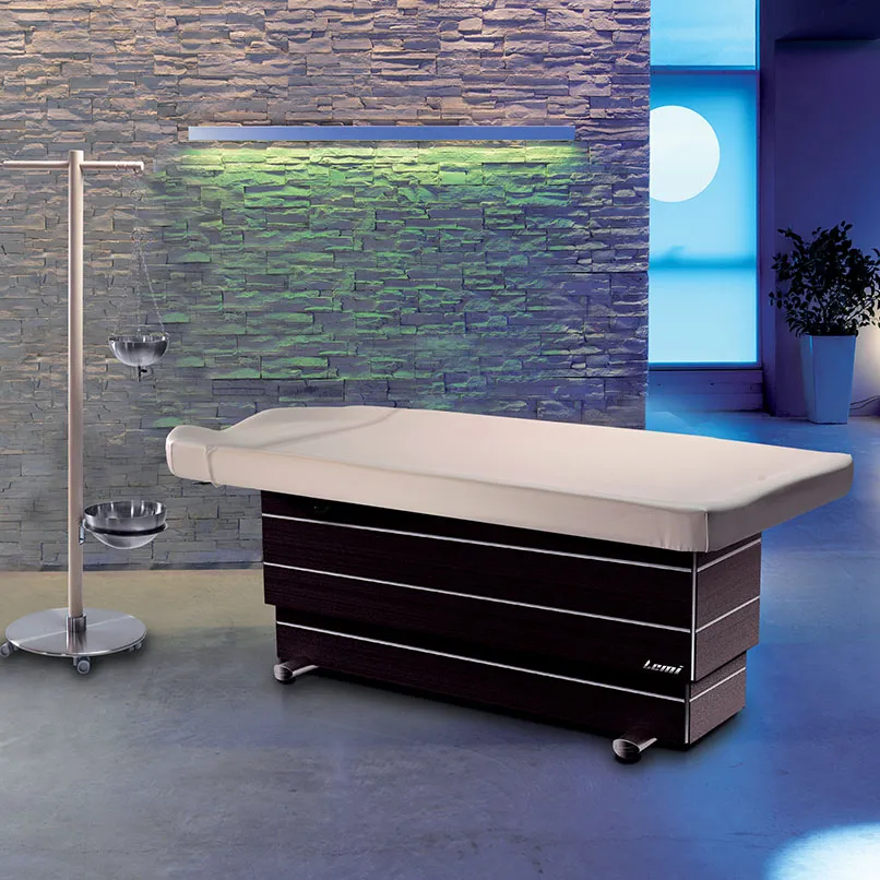 Кушетка для салона Lemi Ayurveda V идеально подходит для аюрведического массажа и процедуры Широдхара. Ее также можно использовать для других процедур по уходу за лицом и телом: