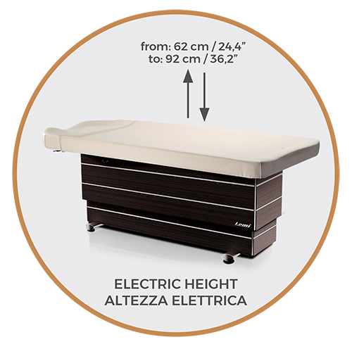 Lemi Ayurveda V — итальянская кушетка, разработанная с учетом комфорта клиента и удобства работы мастера. У нее устойчивый прочный каркас и маслоустойчивый матрас, за которым легко ухаживать. Благодаря электроприводу, кушетка функциональная и простая в управлении. Как и вся эксклюзивная мебель для СПА, кушетка для массажа Lemi Ayurveda V изготавливается в Италии.