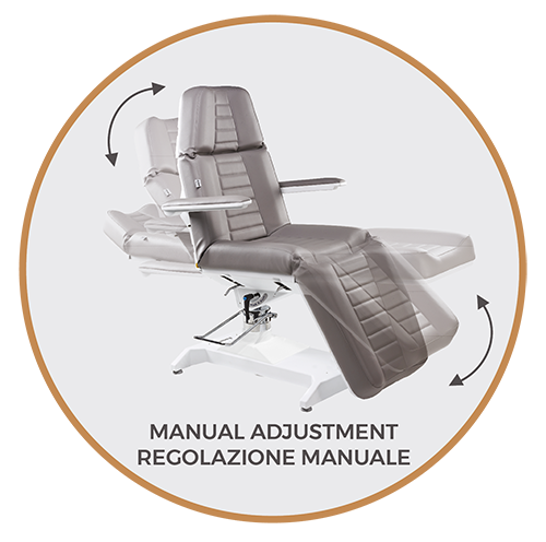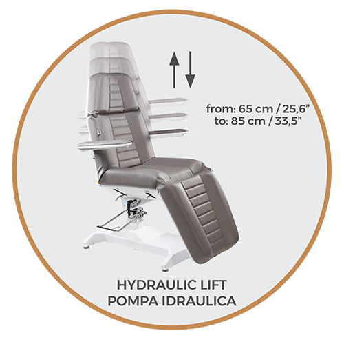 Косметологическое кресло Lemi 2 оснащено гидравлическим подъемом, ручной регулировкой и возможностью вращаться на 360°. Его внутренние механизмы скрыты и надежно защищены корпусом из ABS-пластика.
