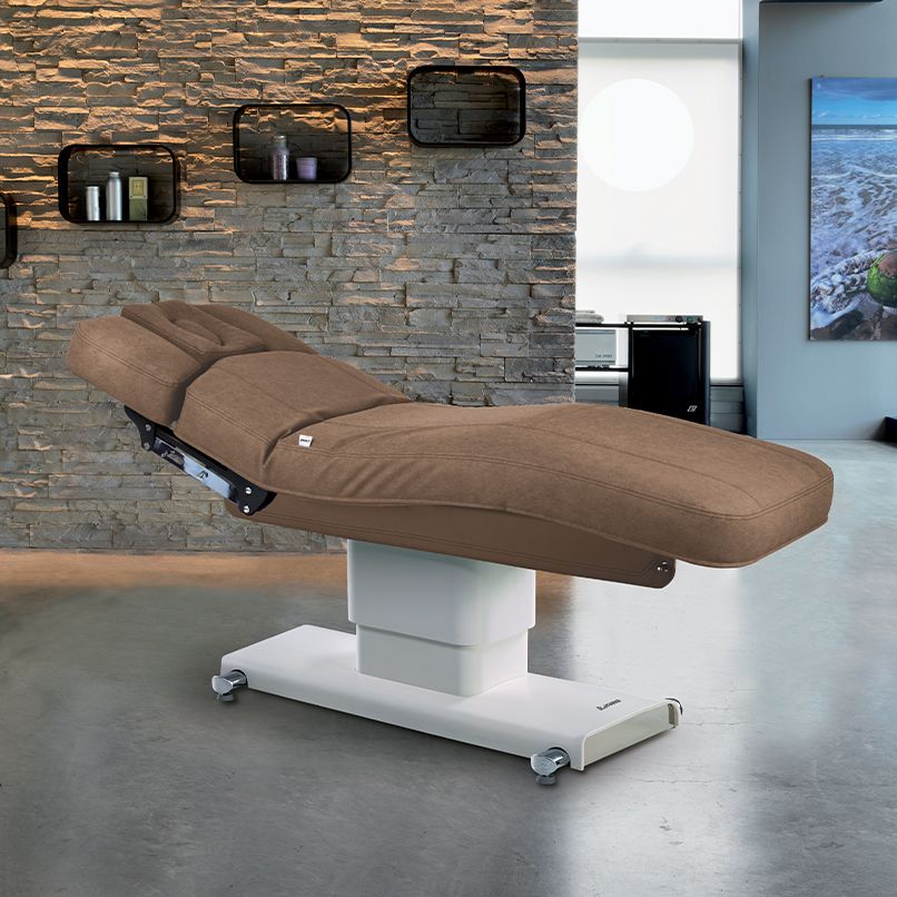 Кушетка для SPA Lemi Centrun Evo — высокотехнологичная мебель, которая оснащена электроприводом и электроникой. Внутри нее установлено 3 электродвигателя, работающих независимо друг от друга. С помощью электропривода и 2 встроенных функций можно отрегулировать положение клиента на кушетке: