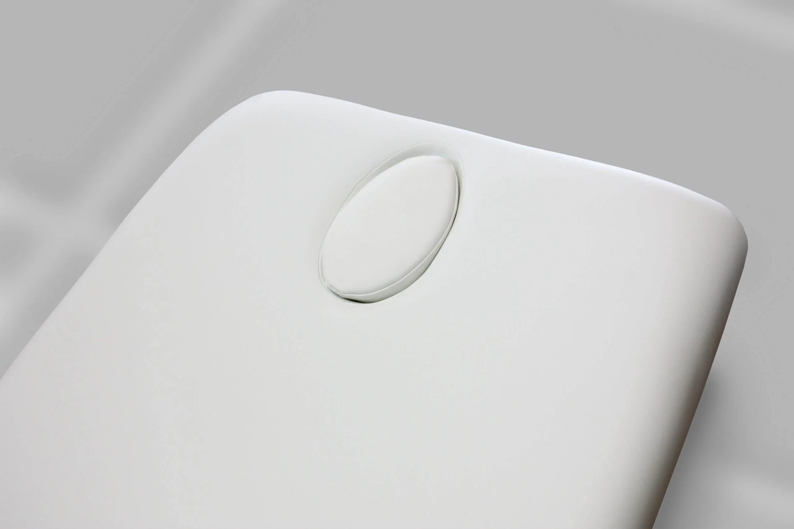 Вы можете заказать кушетку Somed с матрасом, оснащенным отверстием для лица (опционально). Этот вариант позволяет полностью вытянуть шею, размещая пациента в удобное положение. Если отверстие не используется, просто вставьте в него подушку-вкладку.