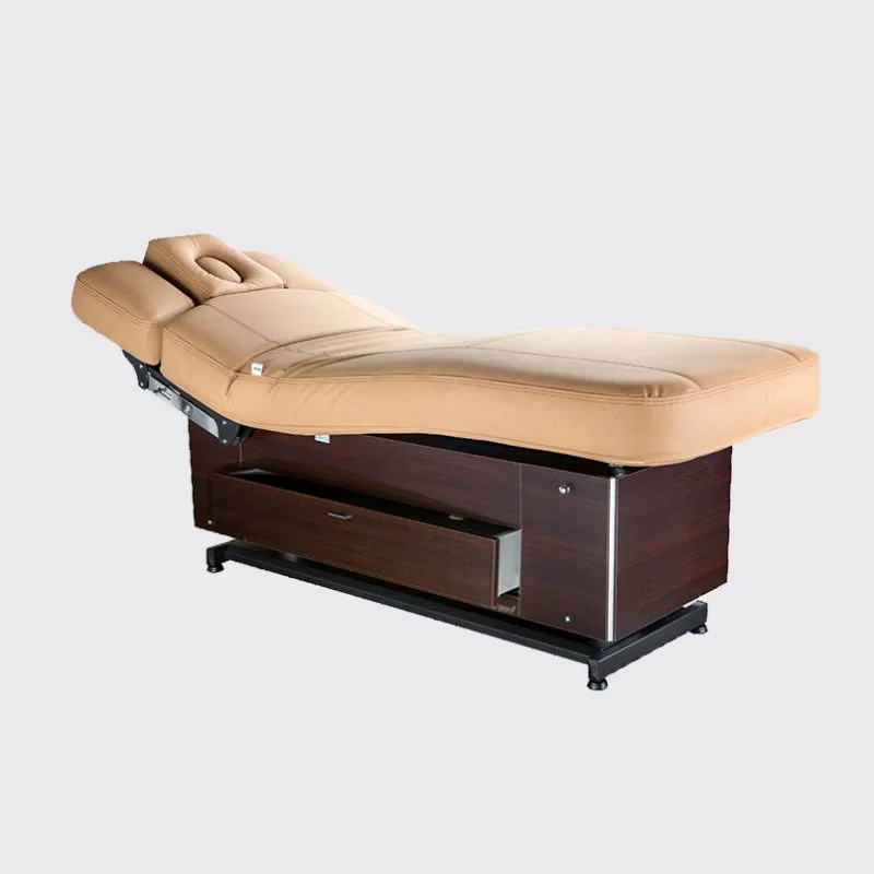 Массажная кушетка оснащена удобным и большим деревянным ящиком, который можно выдвинуть с помощью небольшой ручки.