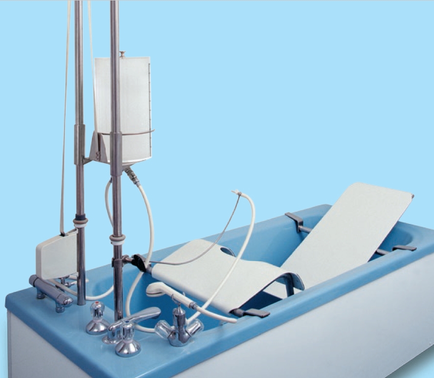 Надежное и простое обращение с переставляемой по высоте процедурной емкостью, комфортная и гигиенически удобная система на базе медицинской ванны. При проведении кишечного орошения с системой фирмы Унбешайден пациент лежит в удобном положении на специальной кушетке, которая устанавливается в ванну.