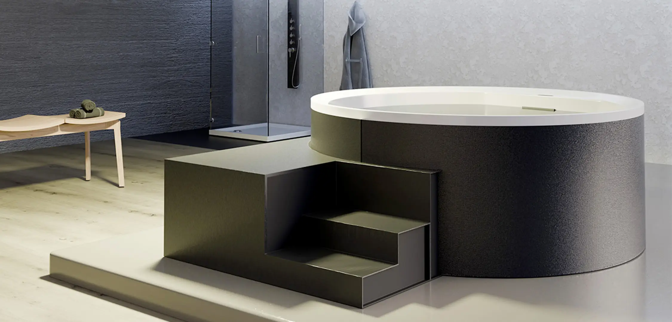 Зовнішня панель басейну виготовлена з Alucobond, матеріалу, що характеризується високою міцністю і гнучкістю, що забезпечує максимальну функціональність і довговічність виробу навіть у разі інтенсивного використання. Покриття з корабельної тканини надає Ice Bath personal ексклюзивного зовнішнього вигляду і вишуканого дизайну.