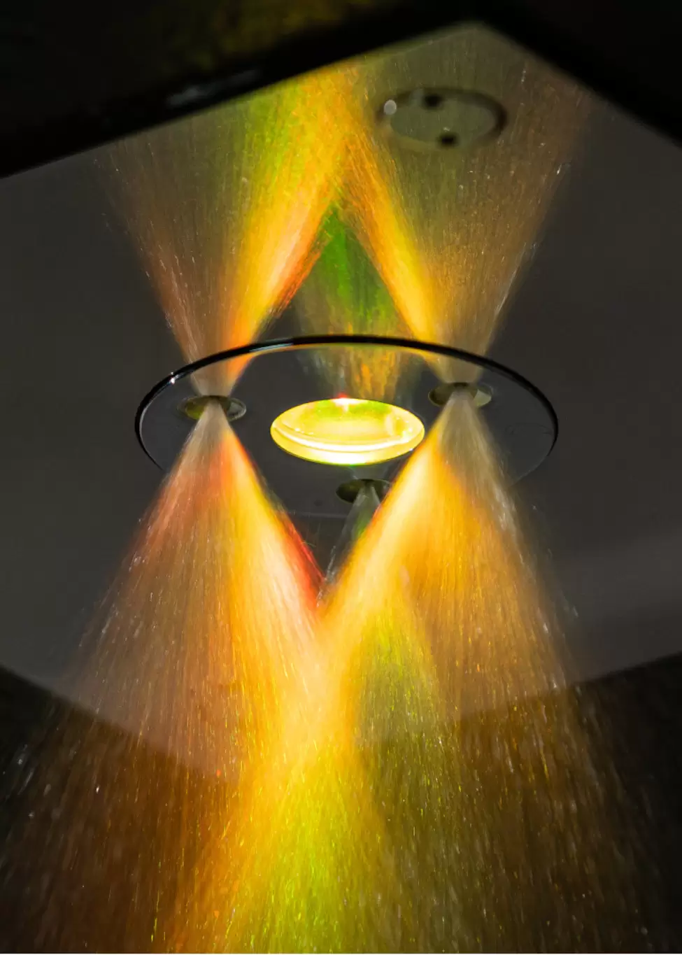 Система Tropical Rain випускає легкий дощ на все тіло клієнта. Вода наповнена солодким ароматом маракуї, а струмені супроводжуються м'яким бурштиновим світлом, що нагадує теплу атмосферу тропічних лісів.