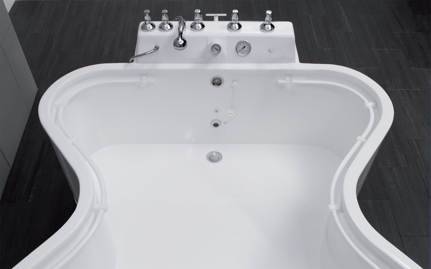 Ванна у формі метелика з внутрішньою довжиною 190 см та максимальною шириною 203 см є ідеальною для проведення кінезотерапії та підводної гімнастики.